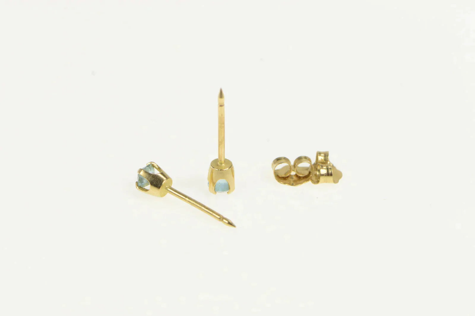 ·Item: 14K Vintage Round Blue Topaz Solitaire Stud Earrings Yellow Gold