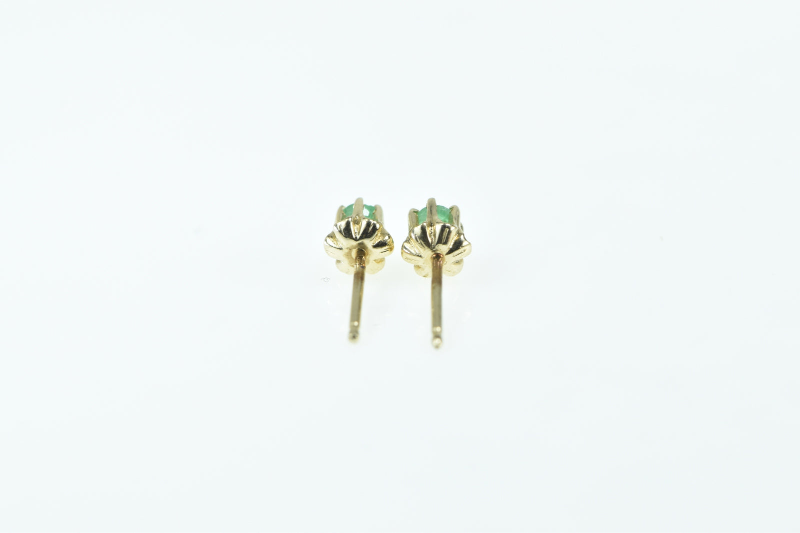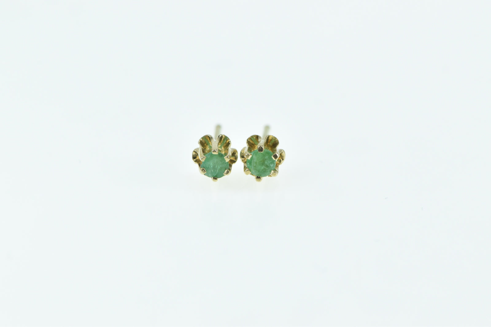·Item: 14K Vintage Round Emerald Solitaire Stud Earrings Yellow Gold