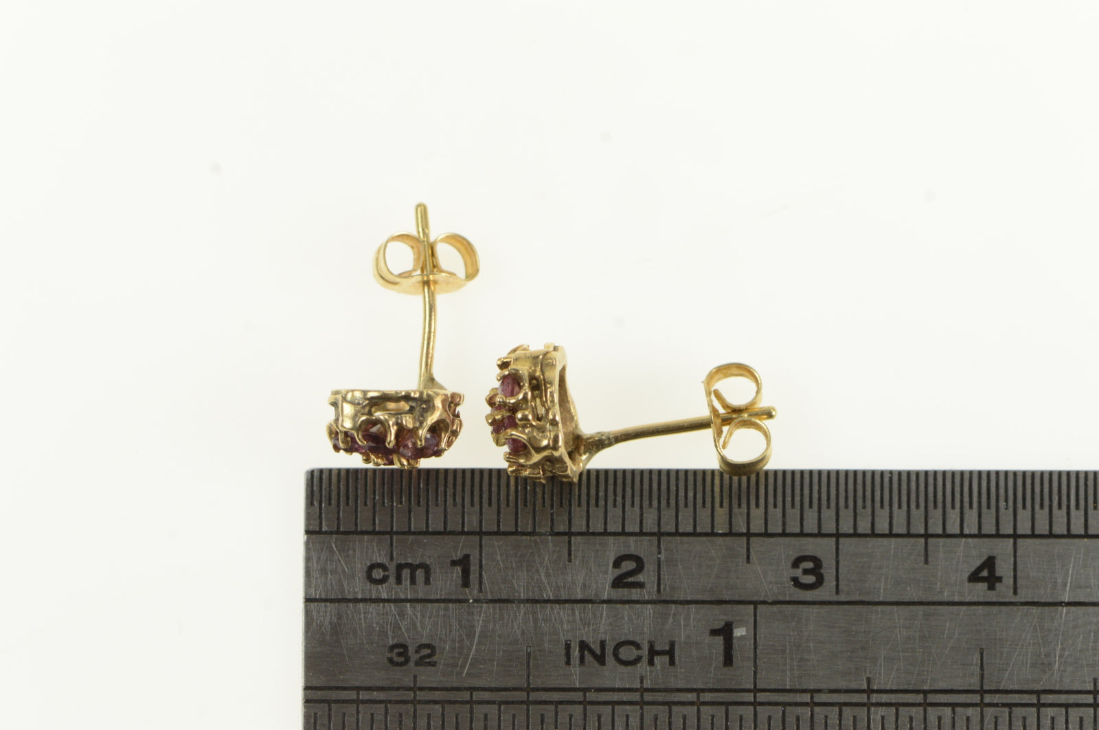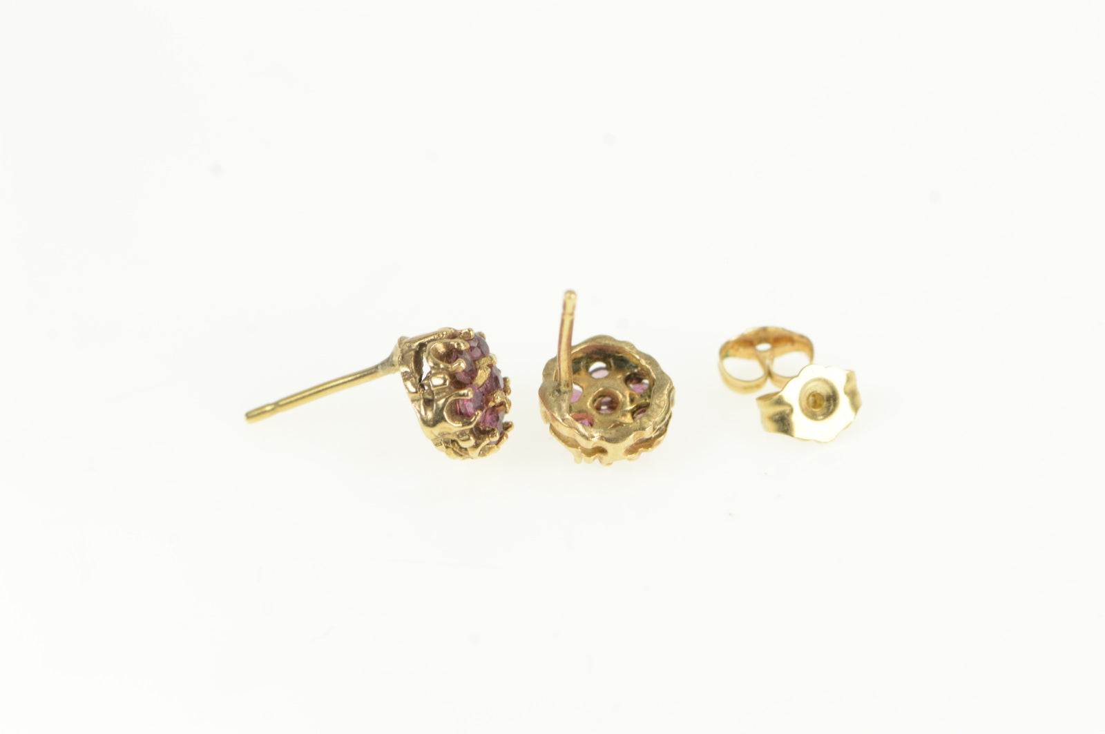 ·Item: 14K Vintage Ruby Flower Round Cluster Stud Earrings Yellow Gold