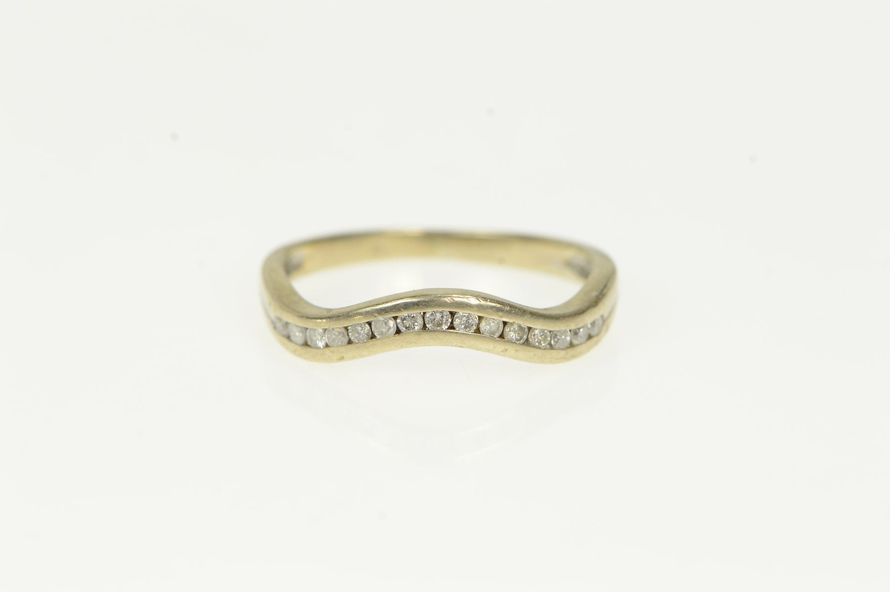 ·Item: 14K Wavy Diamond Channel Wedding Band Ring Size 4.75 Yellow Gold