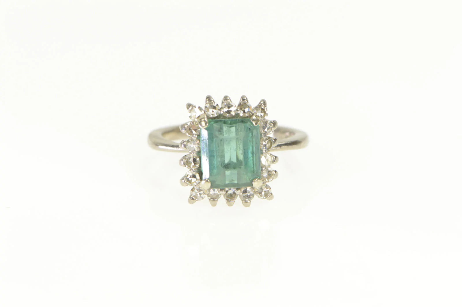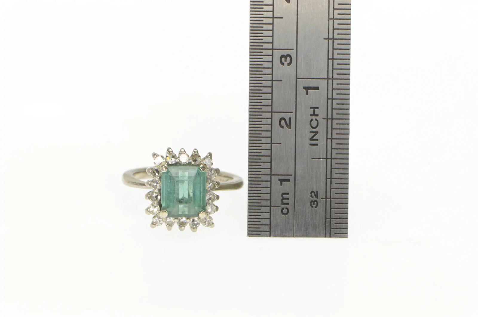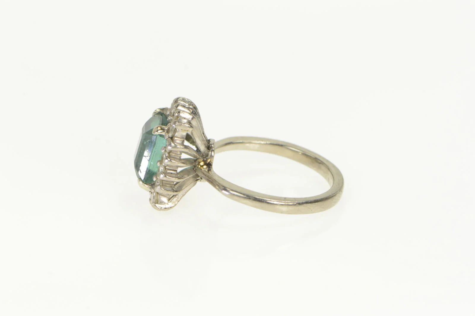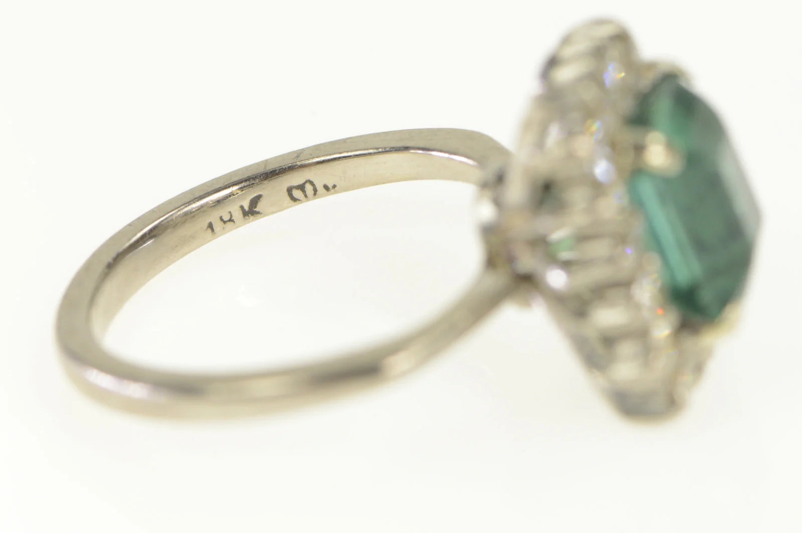 ·Item: 18K 1940's Emerald Cut Fluorite Diamond Halo Ring Size 5.25 White Gold
