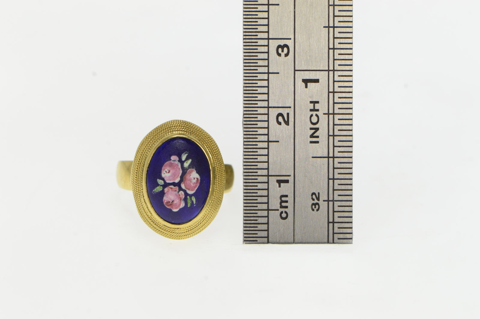 ·Item: 18K Blue Enamel Flower Bouquet Domed Cocktail Ring Size 5.25 Yellow Gold