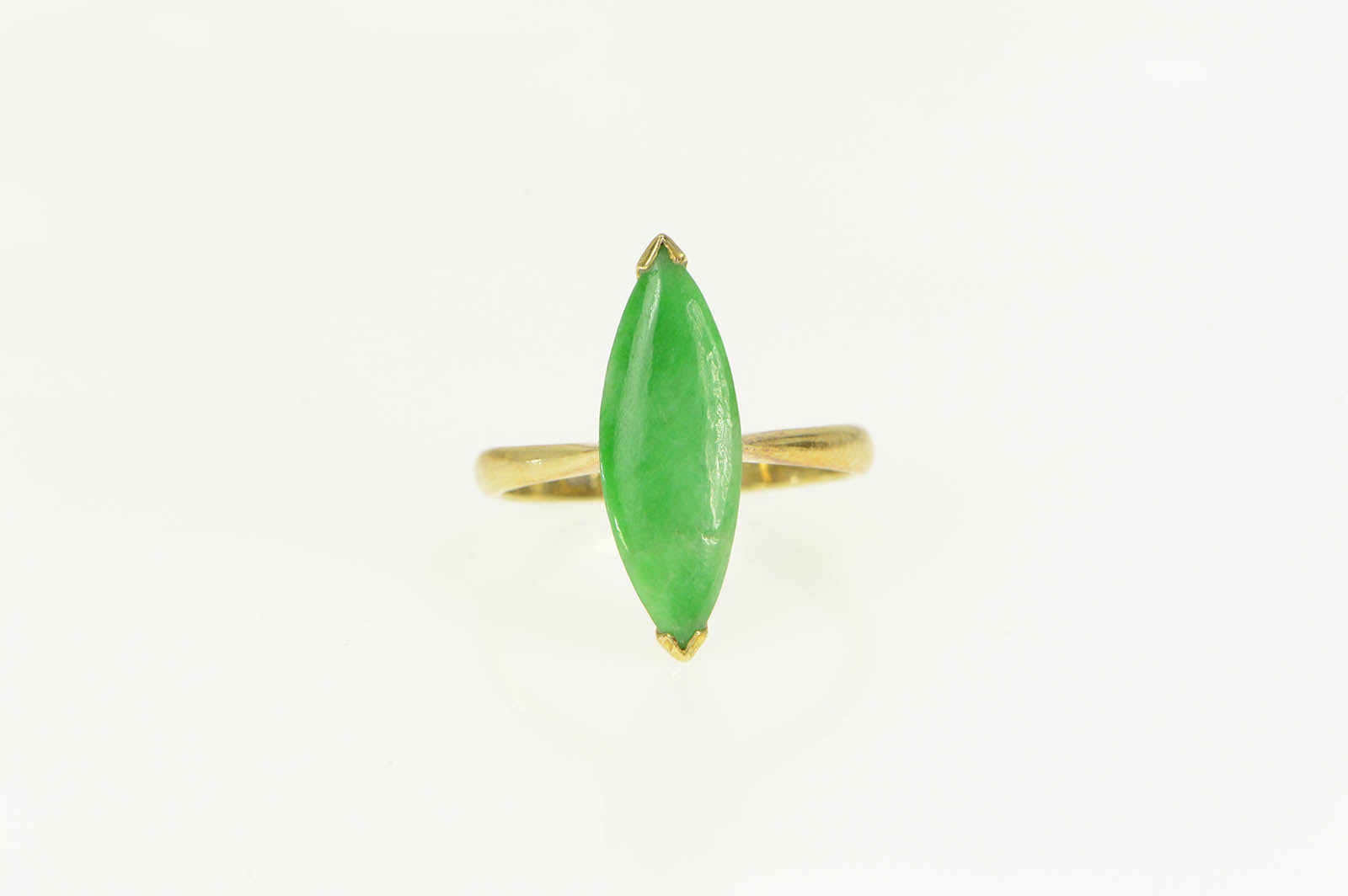 ·Item: 18K Marquise Navette Jadeite 1960's Vintage Ring Size 5 Yellow Gold