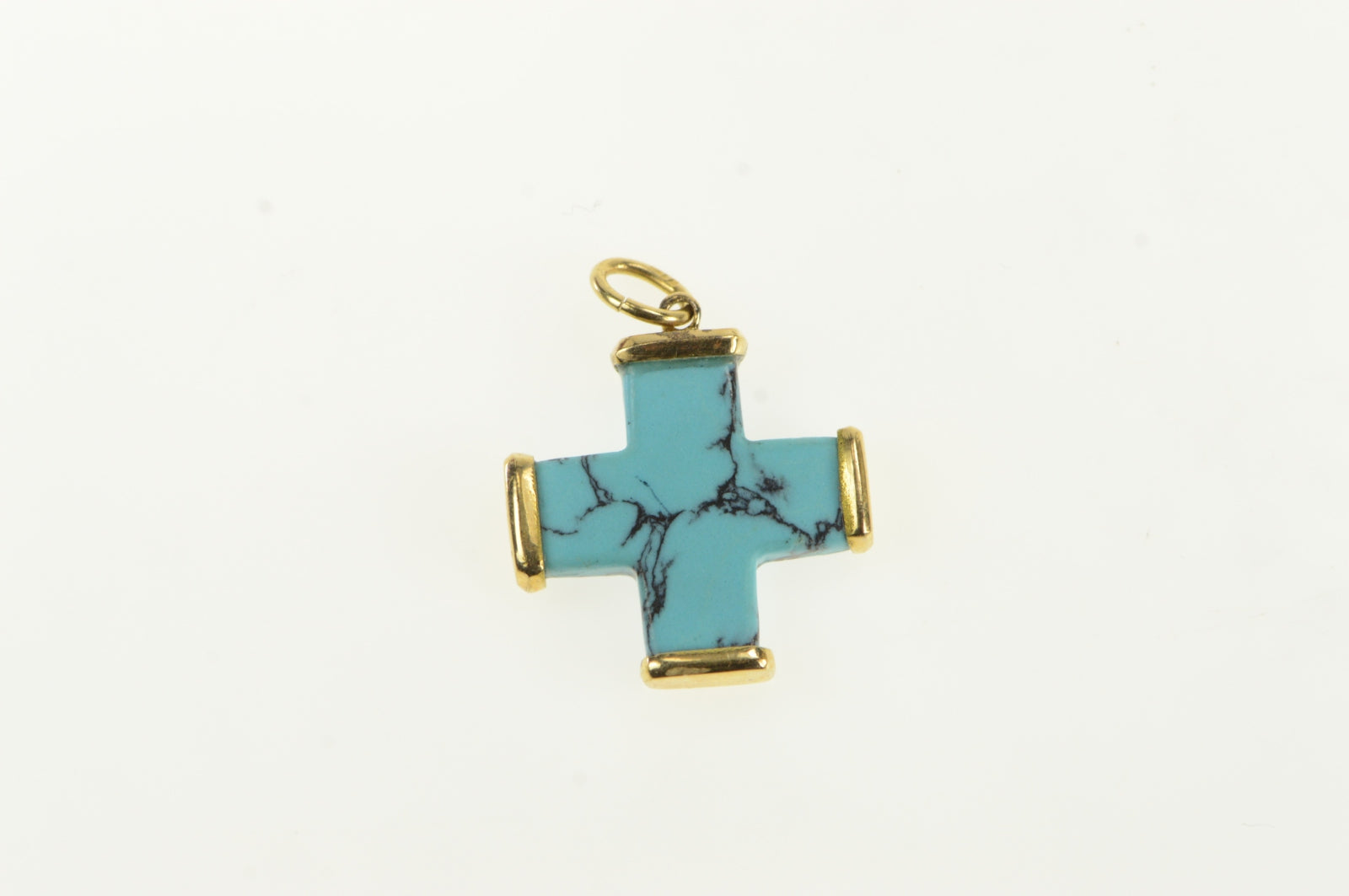 ·Item: 18K Sim. Turquoise Squared Cross Vintage Pendant Yellow Gold