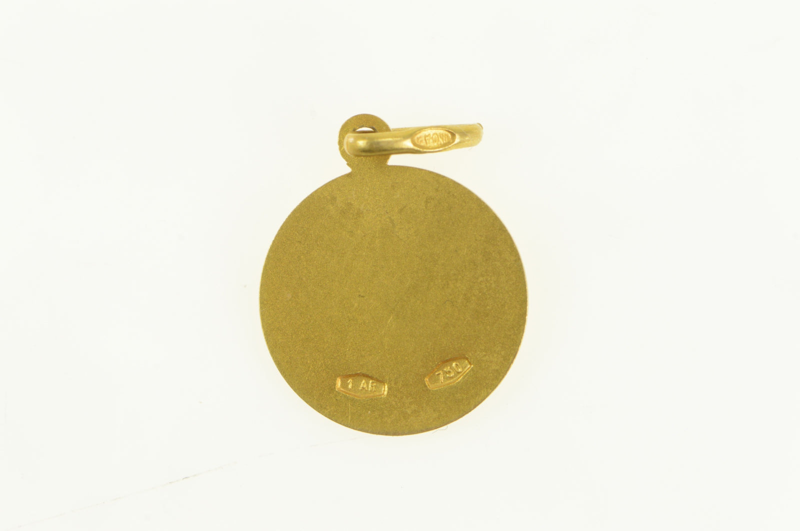 ·Item: 18K Virgin Mary Baby Jesus Biblical Scene Round Charm/Pendant Yellow Gold