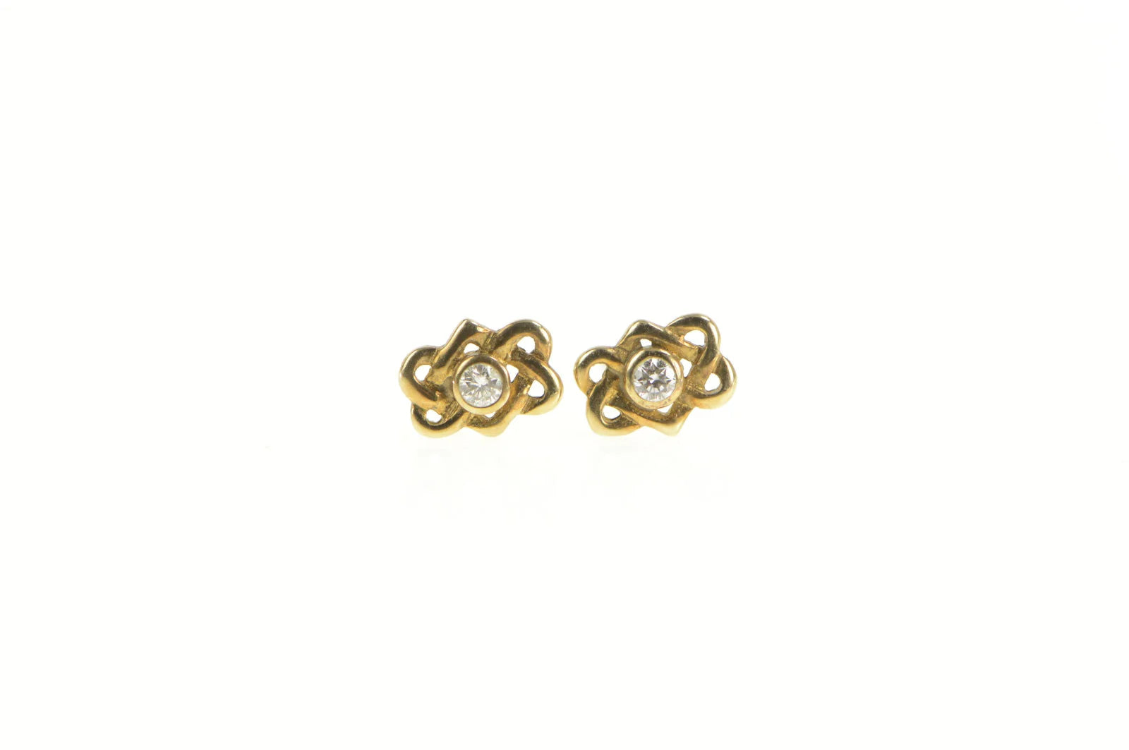 ·Item: 8K Diamond Inset Woven Knot Vintage Stud Earrings Yellow Gold
