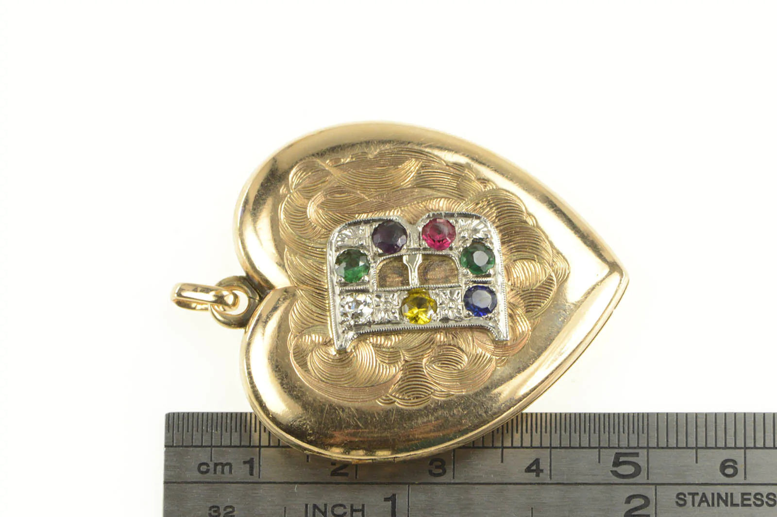 Gold Filled Victorian B Monogram Heart Locket Engraved Pendant