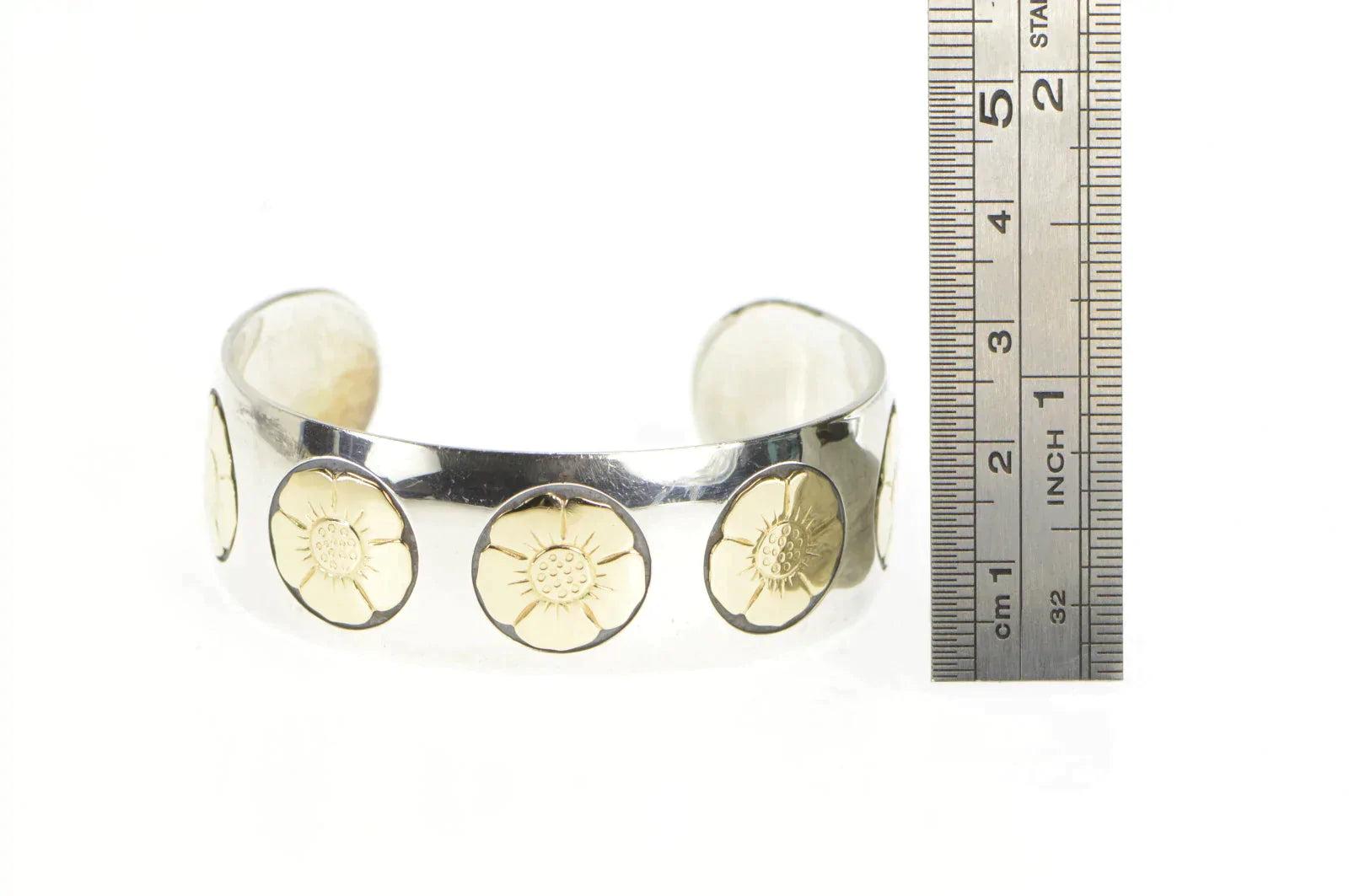 ·Item: Sterling Silver 14K Gold Flower Pattern Wide Cuff James Avery Bracelet 6.75"