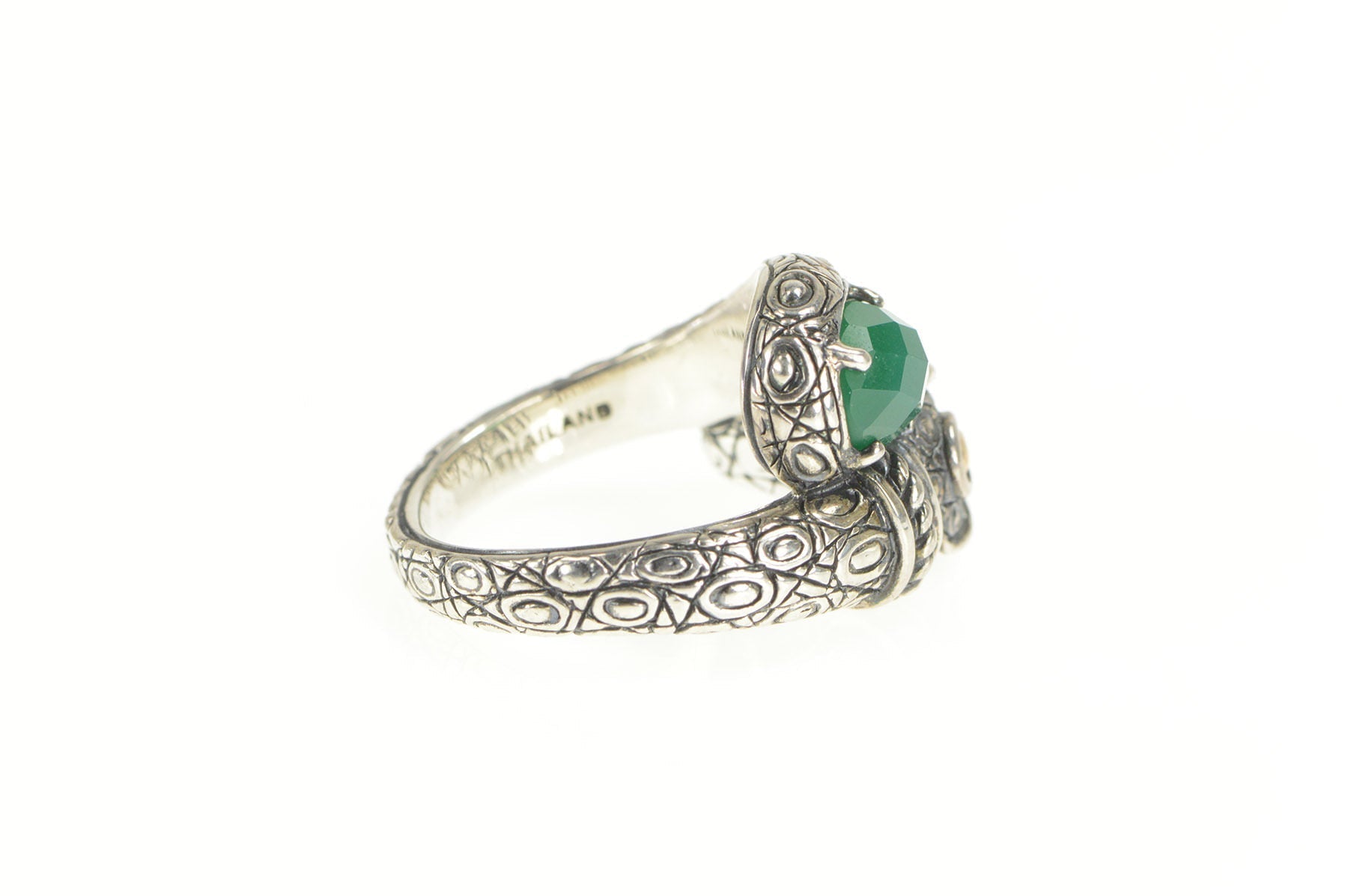 ·Item: Sterling Silver 14k Gold Green Chalcedony Crocodile Cayman Ring Size 6