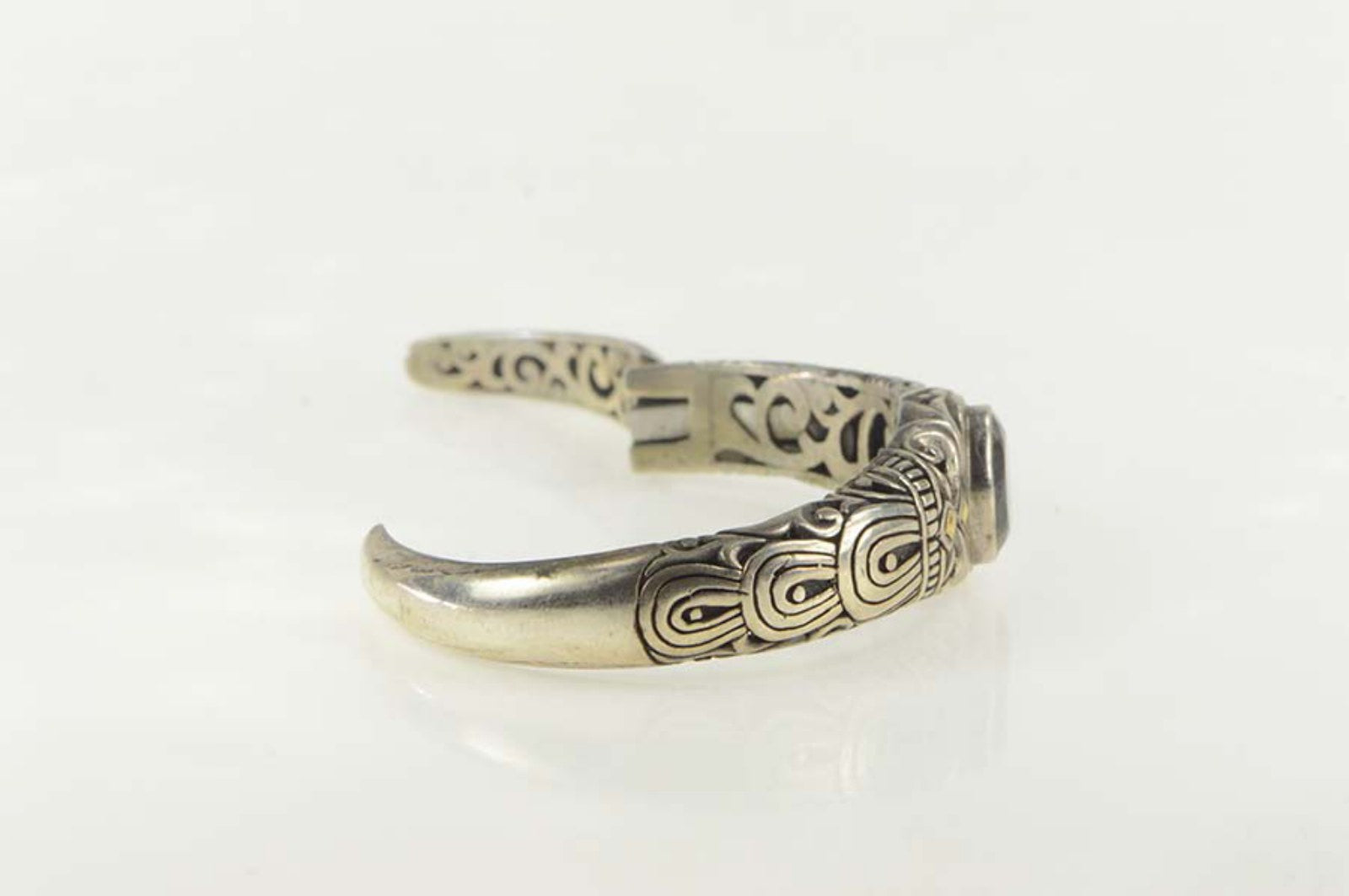 ·Item: Sterling Silver 18K Two Tone Pink Topaz Elaborate Cuff Bracelet 7"