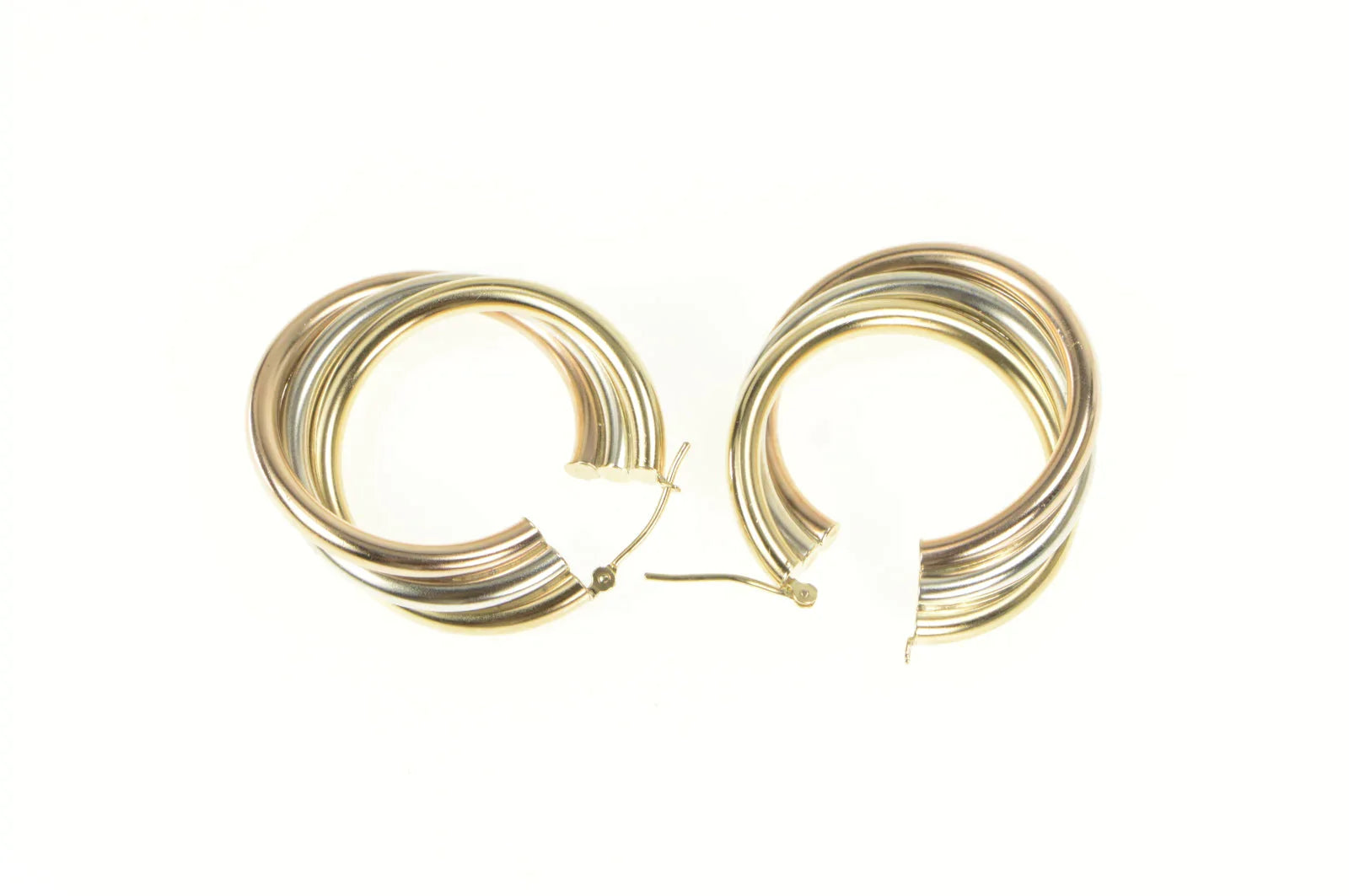 ·Item: Sterling Silver 35mm Tri Tone Twist Statement Hoop Earrings