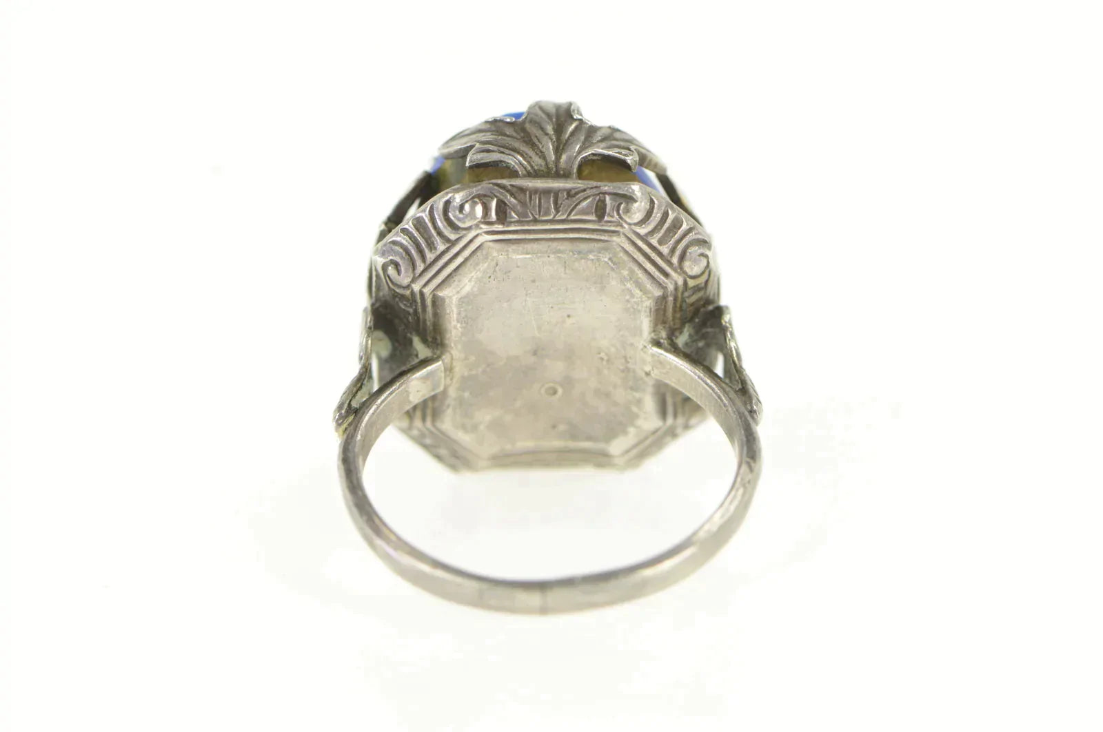 ·Item: Sterling Silver Art Deco Ornate Sim. Sapphire Oak Leaf Ring Size 6.25