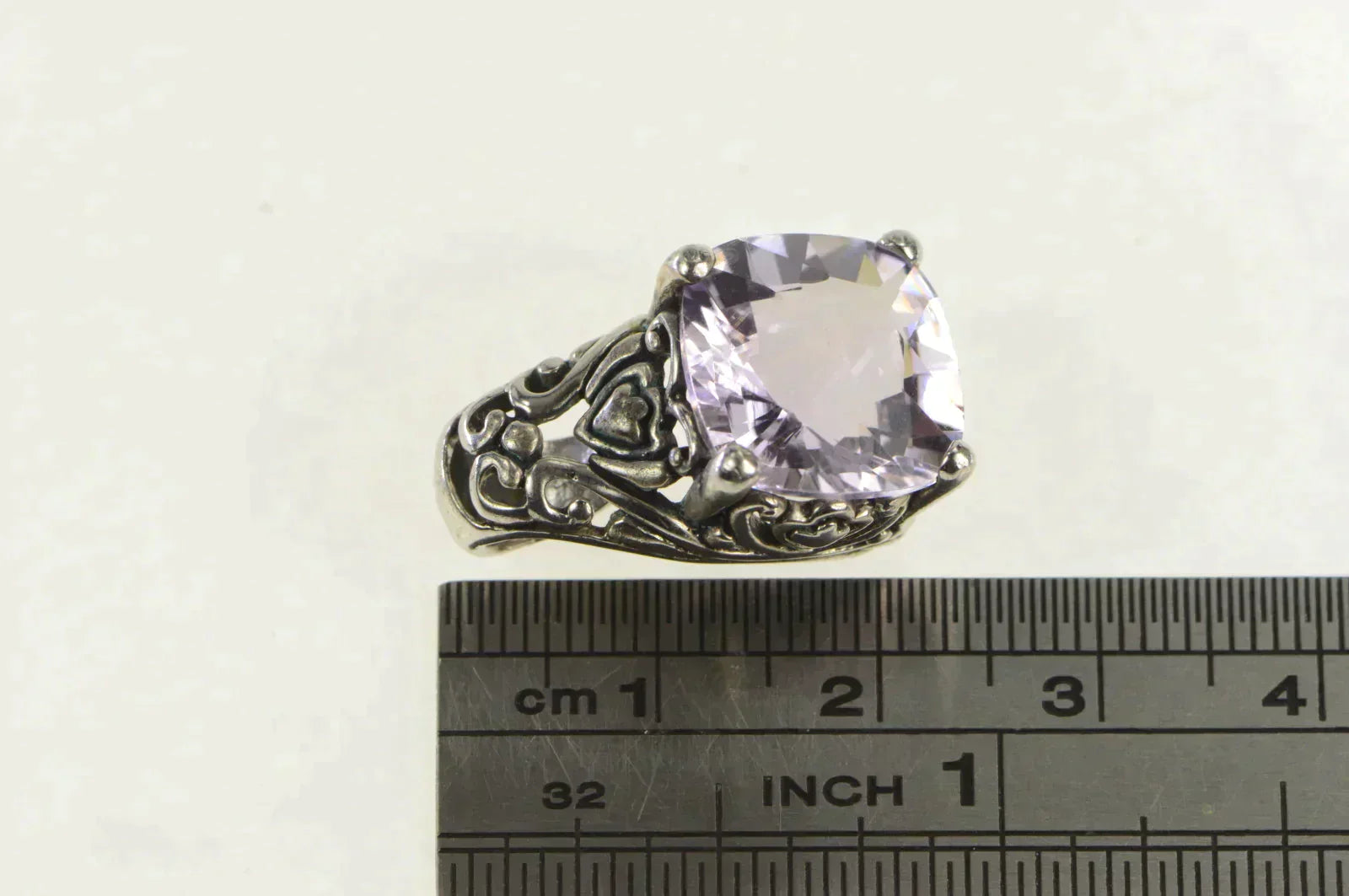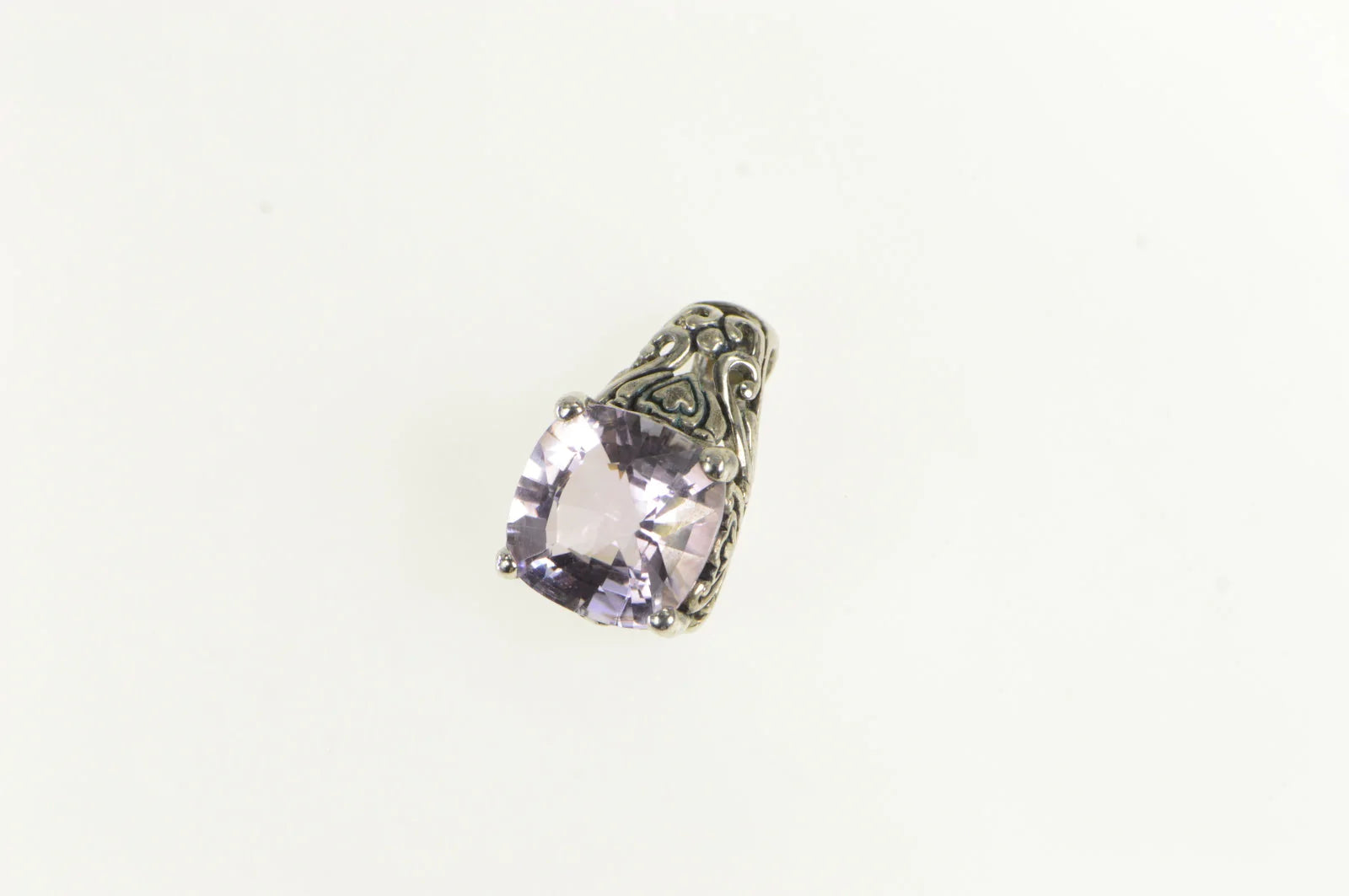 ·Item: Sterling Silver Faceted Cushion Amethyst Ornate Statement Pendant