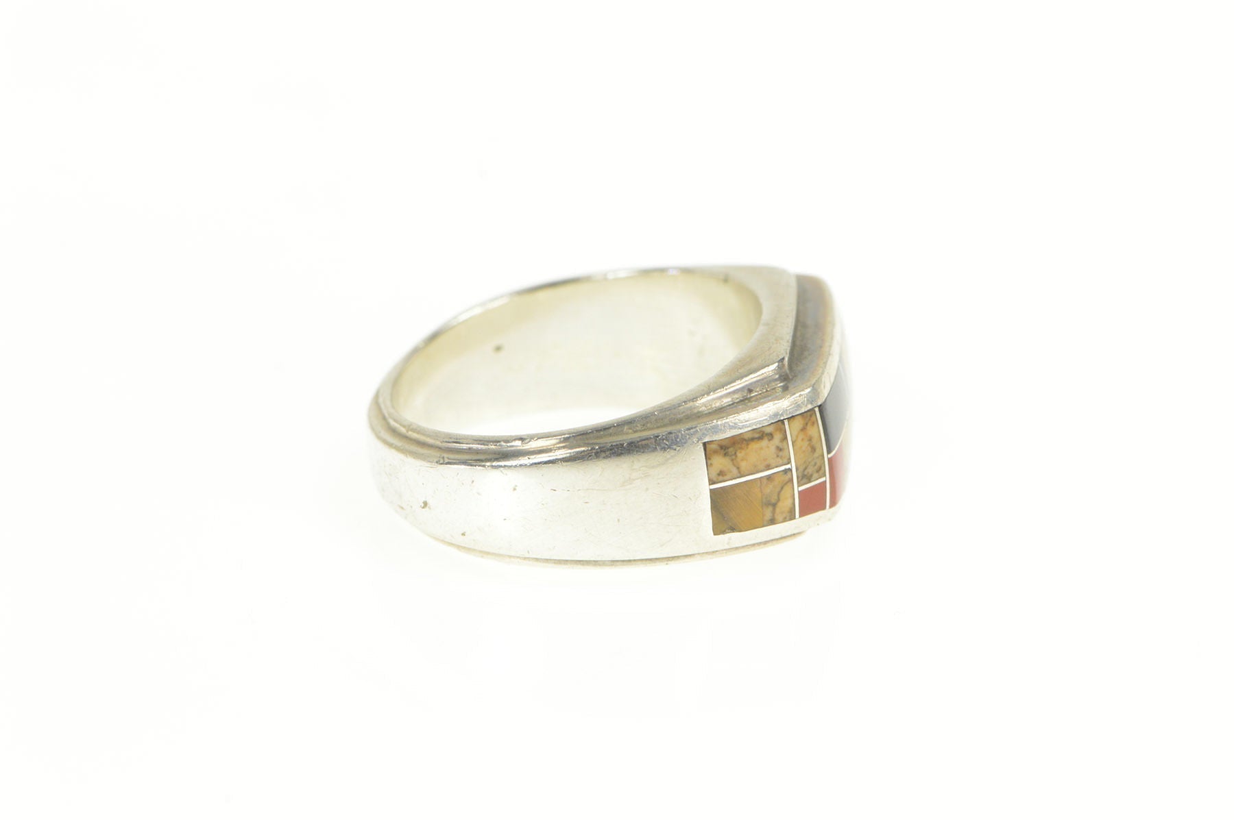 ·Item: Sterling Silver Jasper Black Onyx Squared Inlay Men's Ring Size 8
