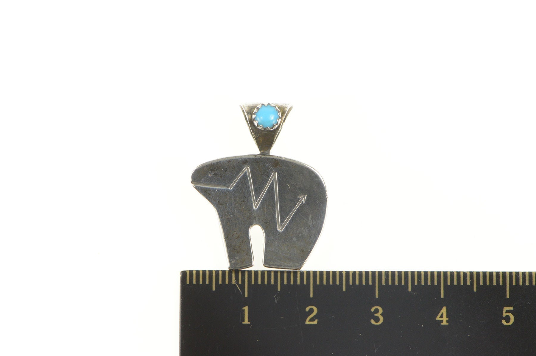 ·Item: Sterling Silver Native American Heartline Bear VK Turquoise Pendant
