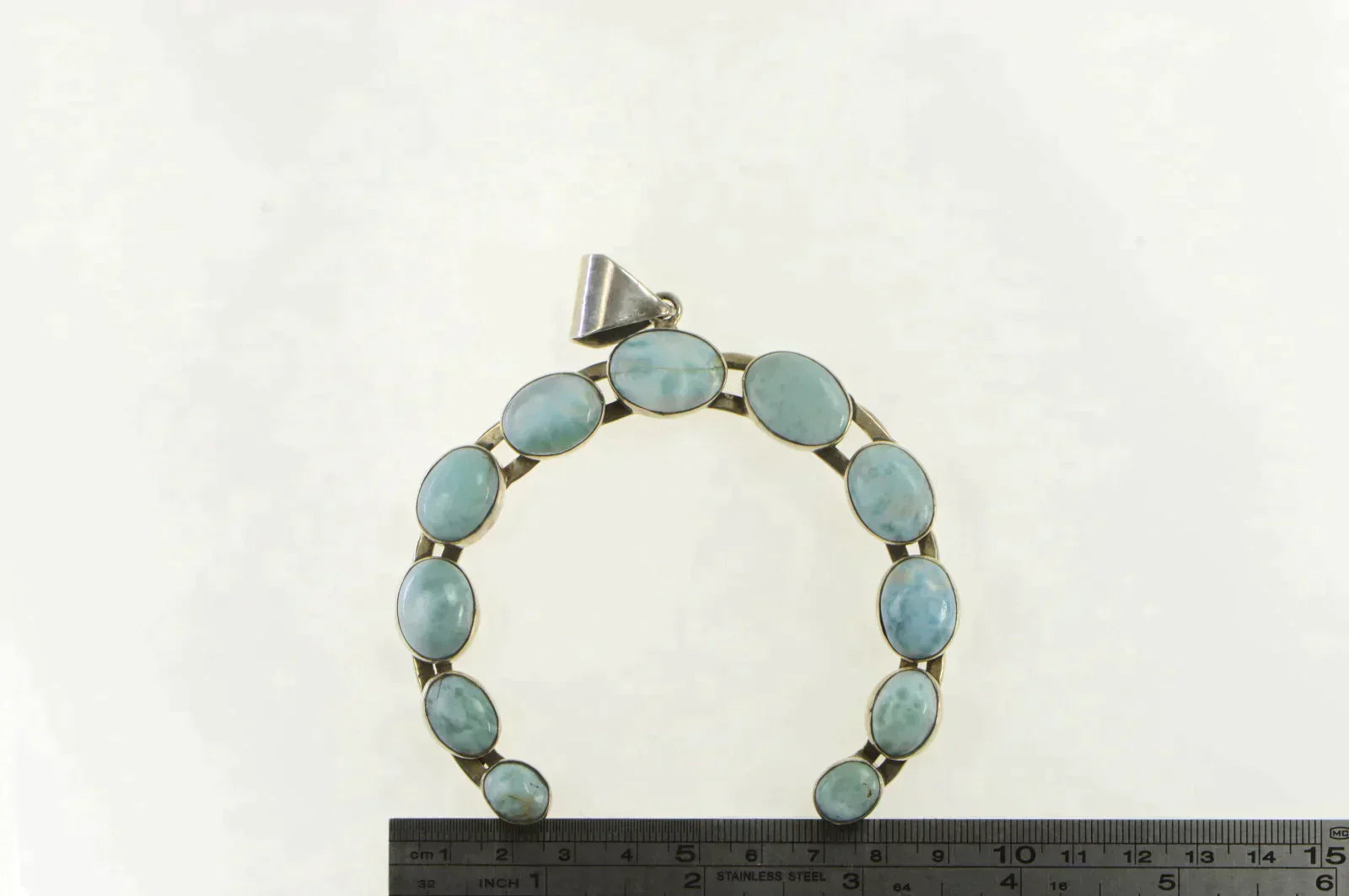 ·Item: Sterling Silver Native American Larimar Horse Shoe Navajo Pendant