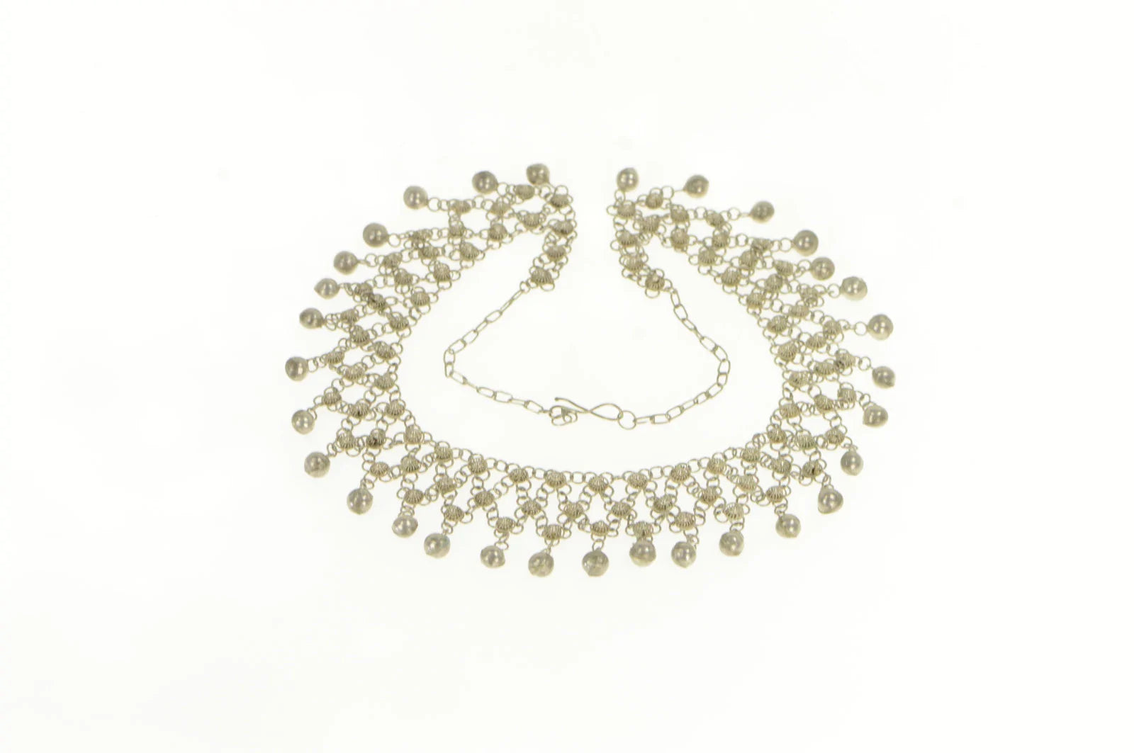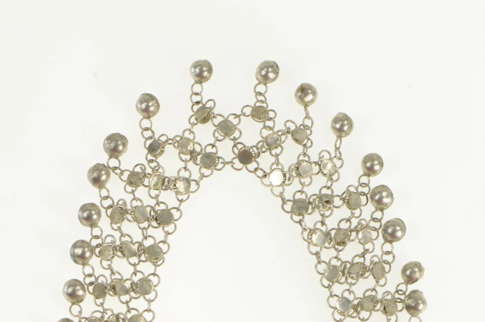 ·Item: Sterling Silver Ornate Mesh Fringe Ball Link Bib Chain Necklace 15.25"