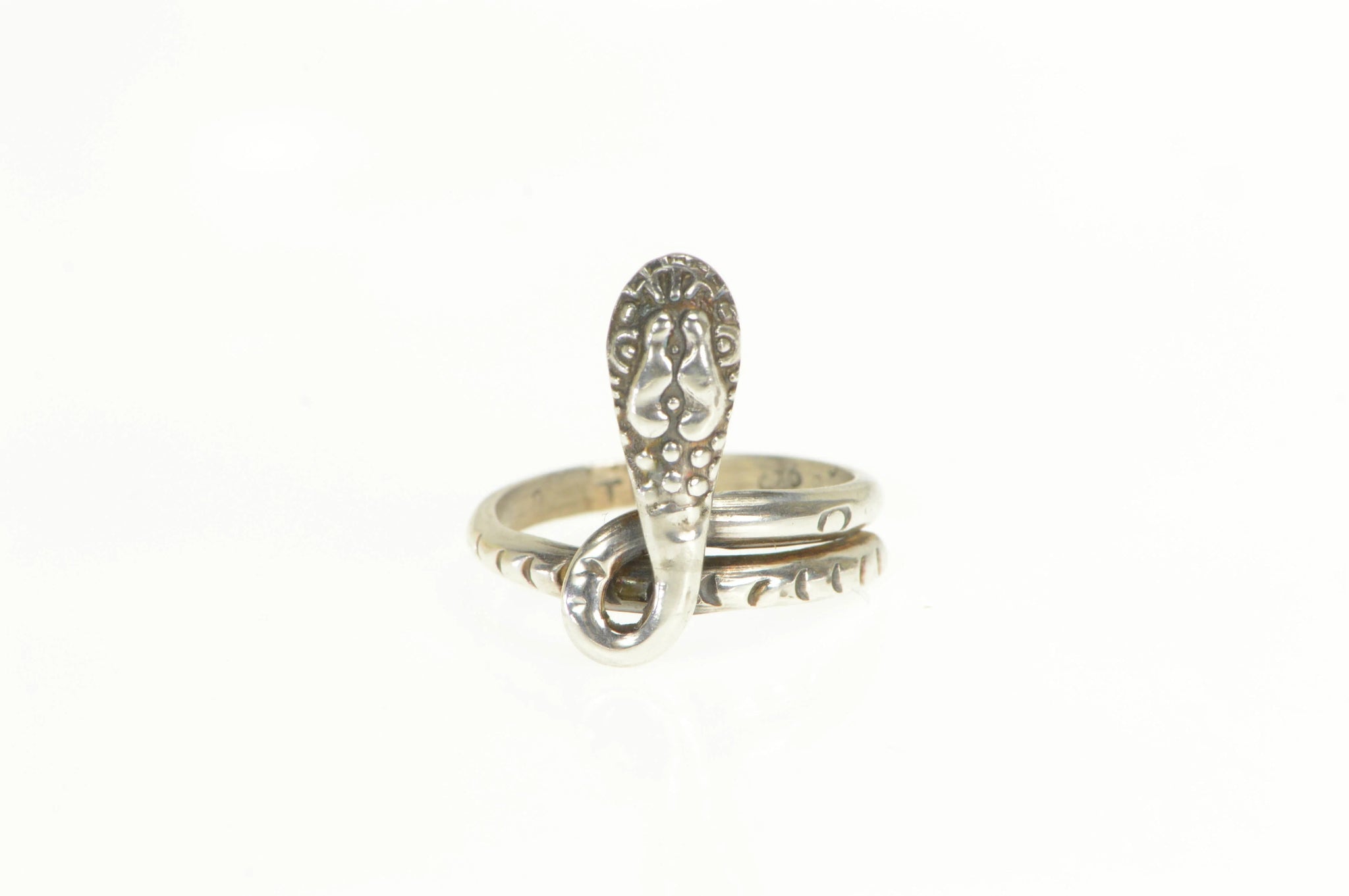 ·Item: Sterling Silver Ornate Snake Serpent Wrap Statement Ring Size 6.5