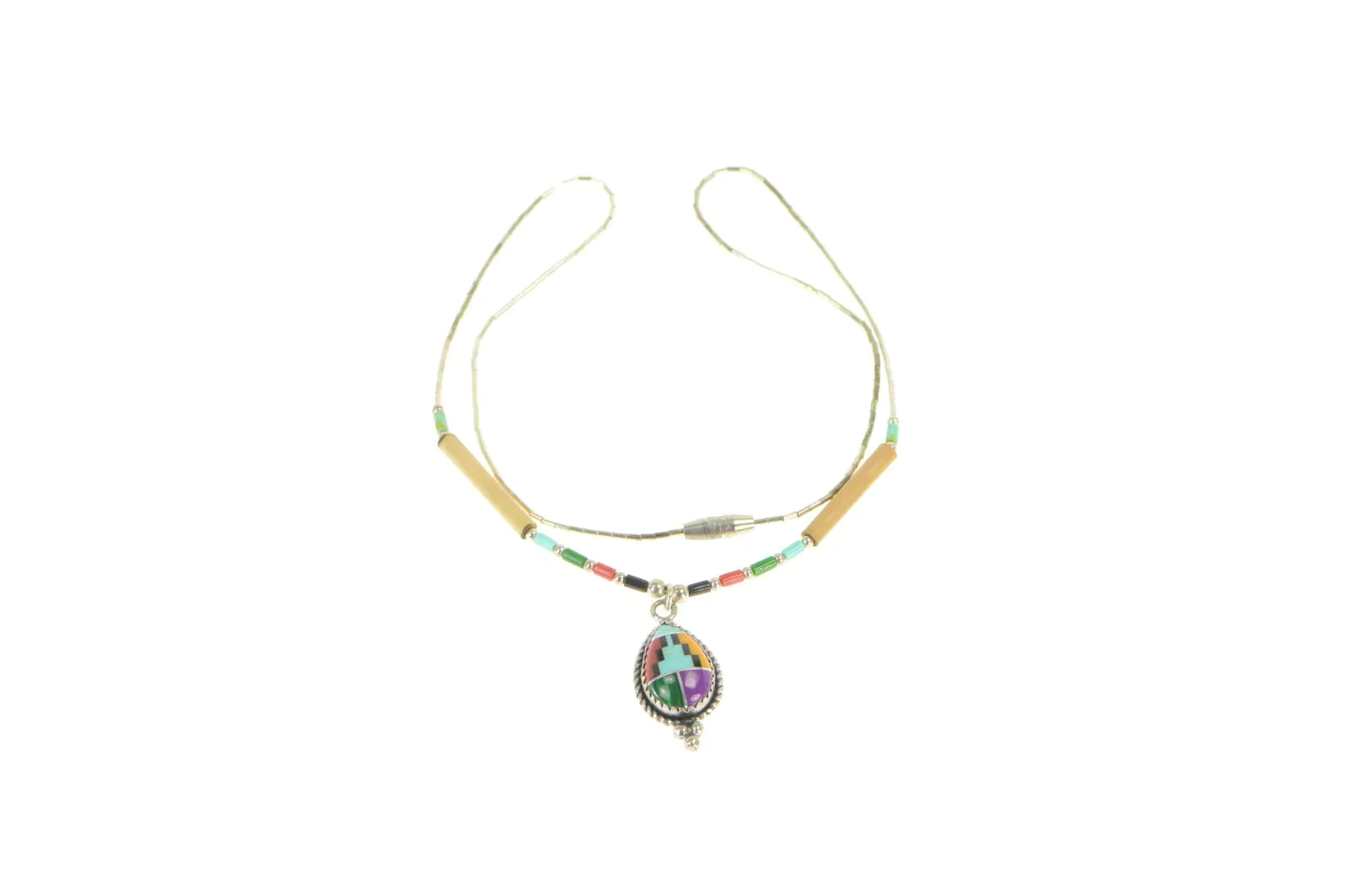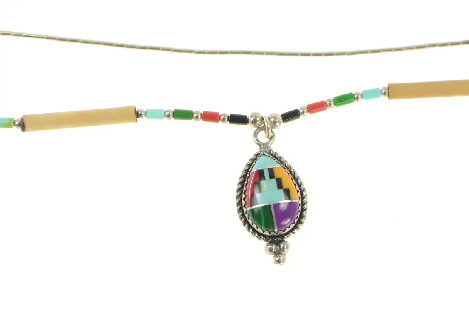 ·Item: Sterling Silver Ornate Turquoise Southwestern Liquid Silver Necklace 16.25"