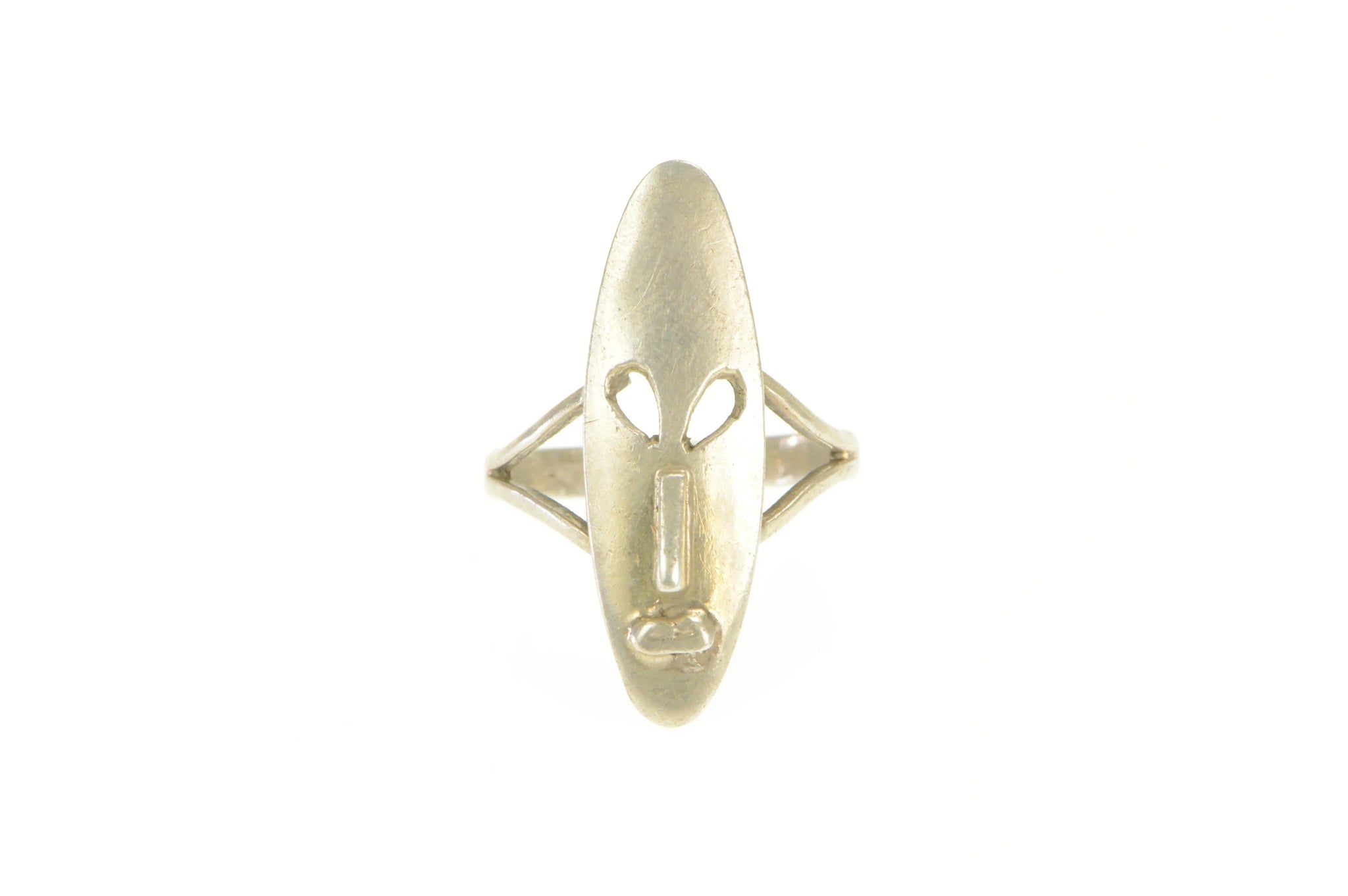 ·Item: Sterling Silver Oval African Traditional Face Mask Statement Ring Size 8.75