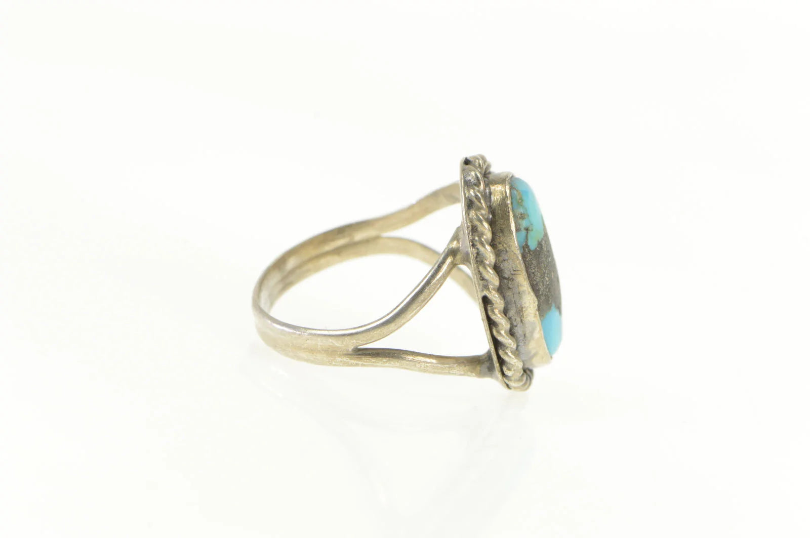 ·Item: Sterling Silver Oval Turquoise Native American Handmade Ring Size 7