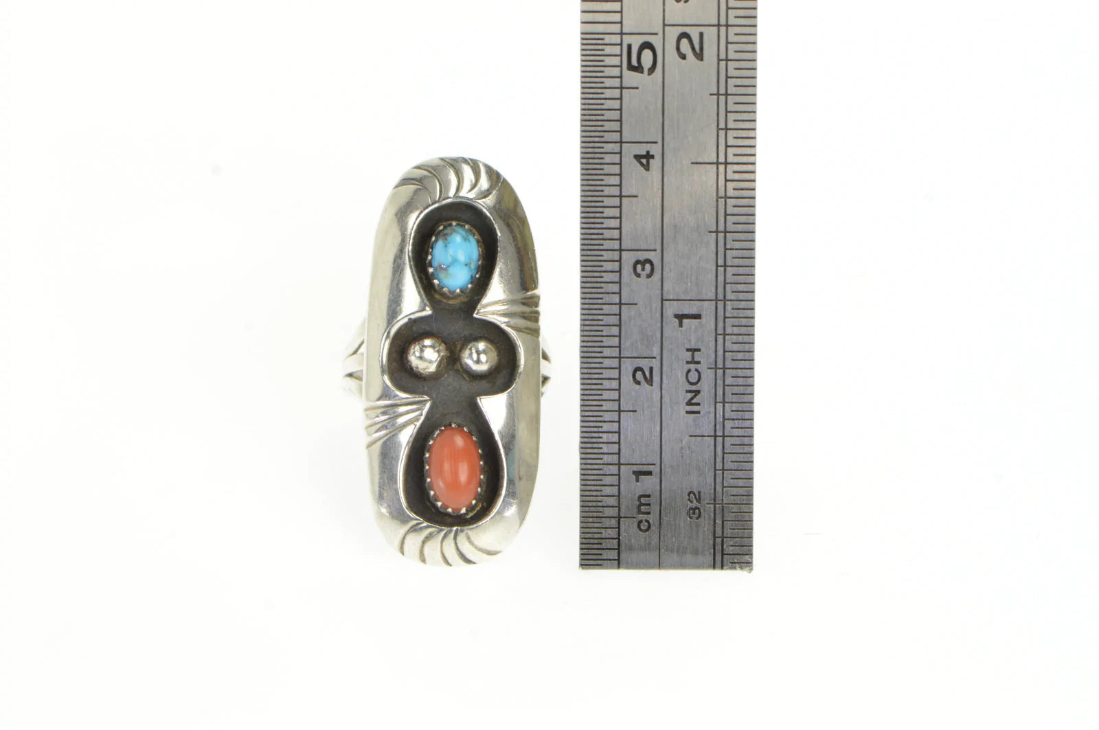 ·Item: Sterling Silver Phillip White Ntv. American Coral Turquiose Ring Size 7.25