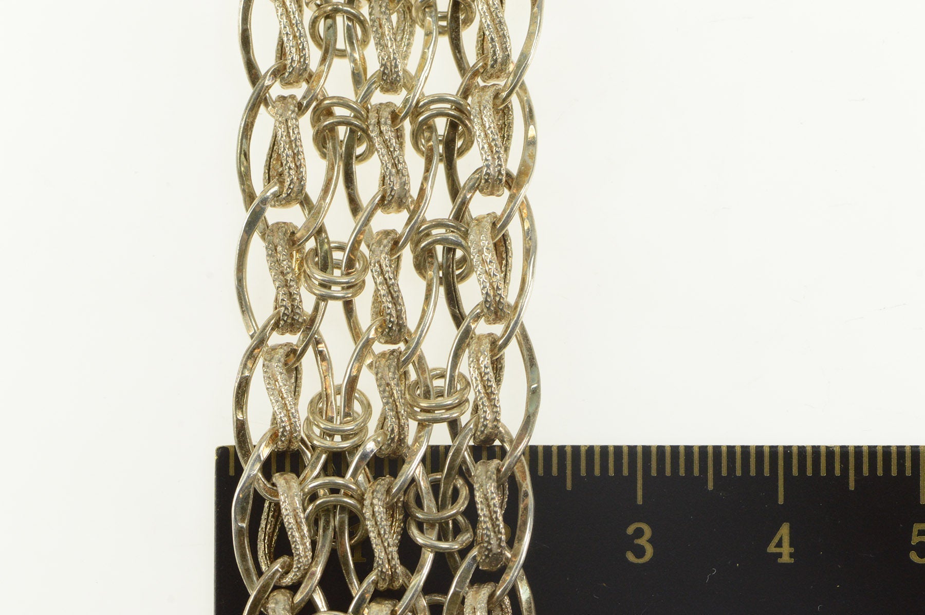 ·Item: Sterling Silver Retro Layered Mesh Chain Link Charm Bracelet 7"