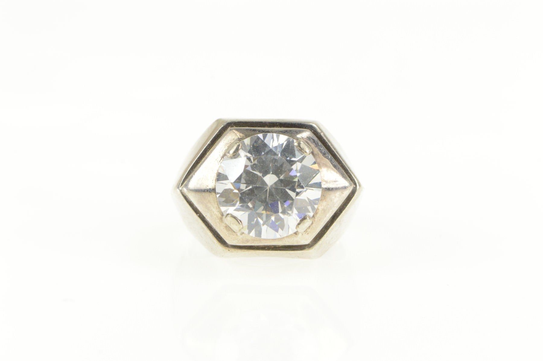·Item: Sterling Silver Round Solitaire Chunky Squared Statement Ring Size 8.5