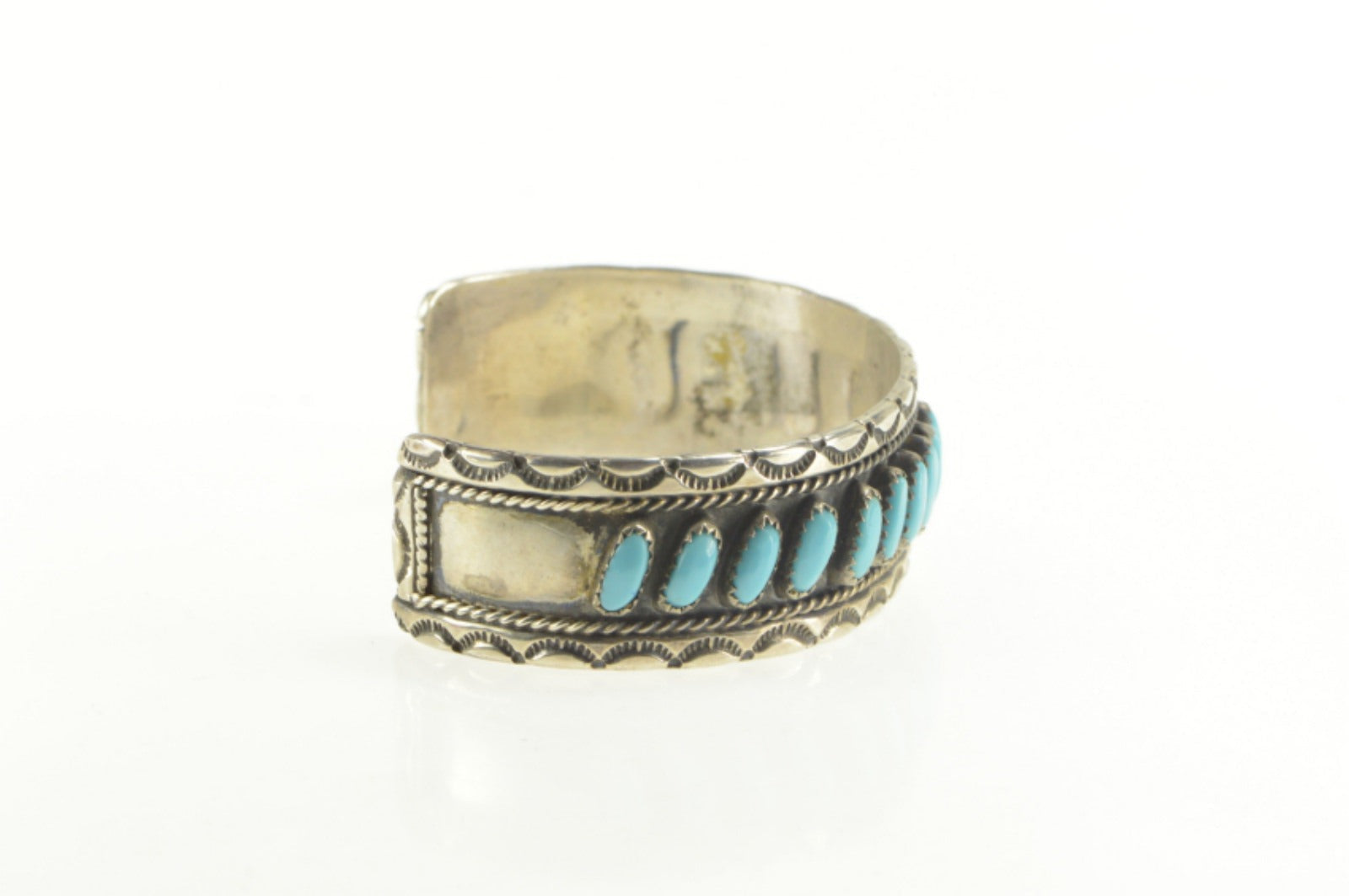 ·Item: Sterling Silver Turquoise Native American Ornate Cuff Bracelet 6.5"