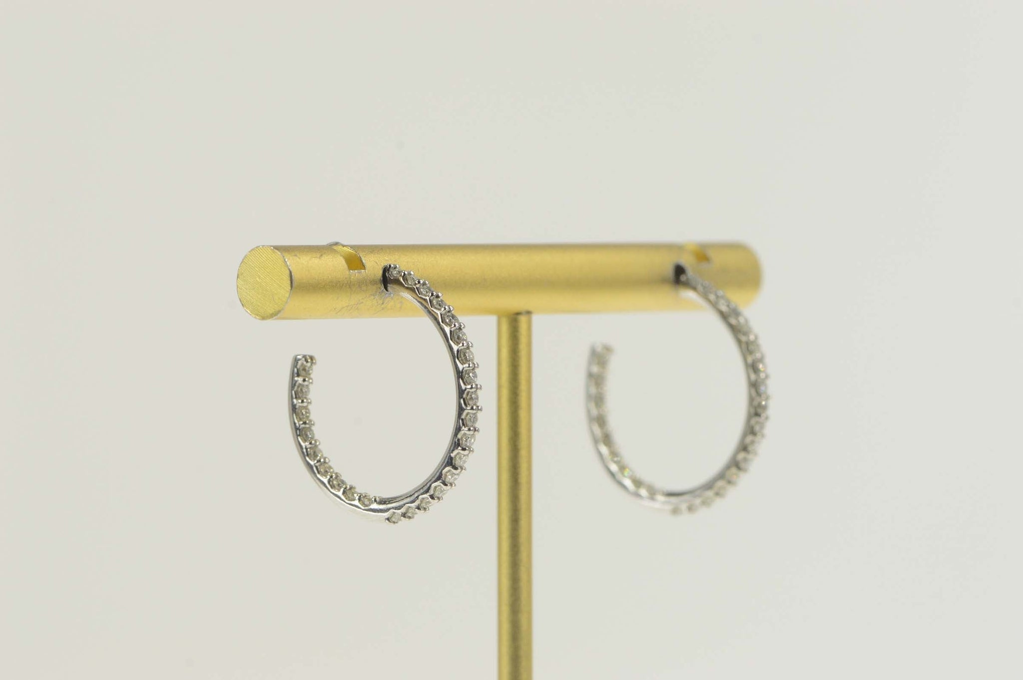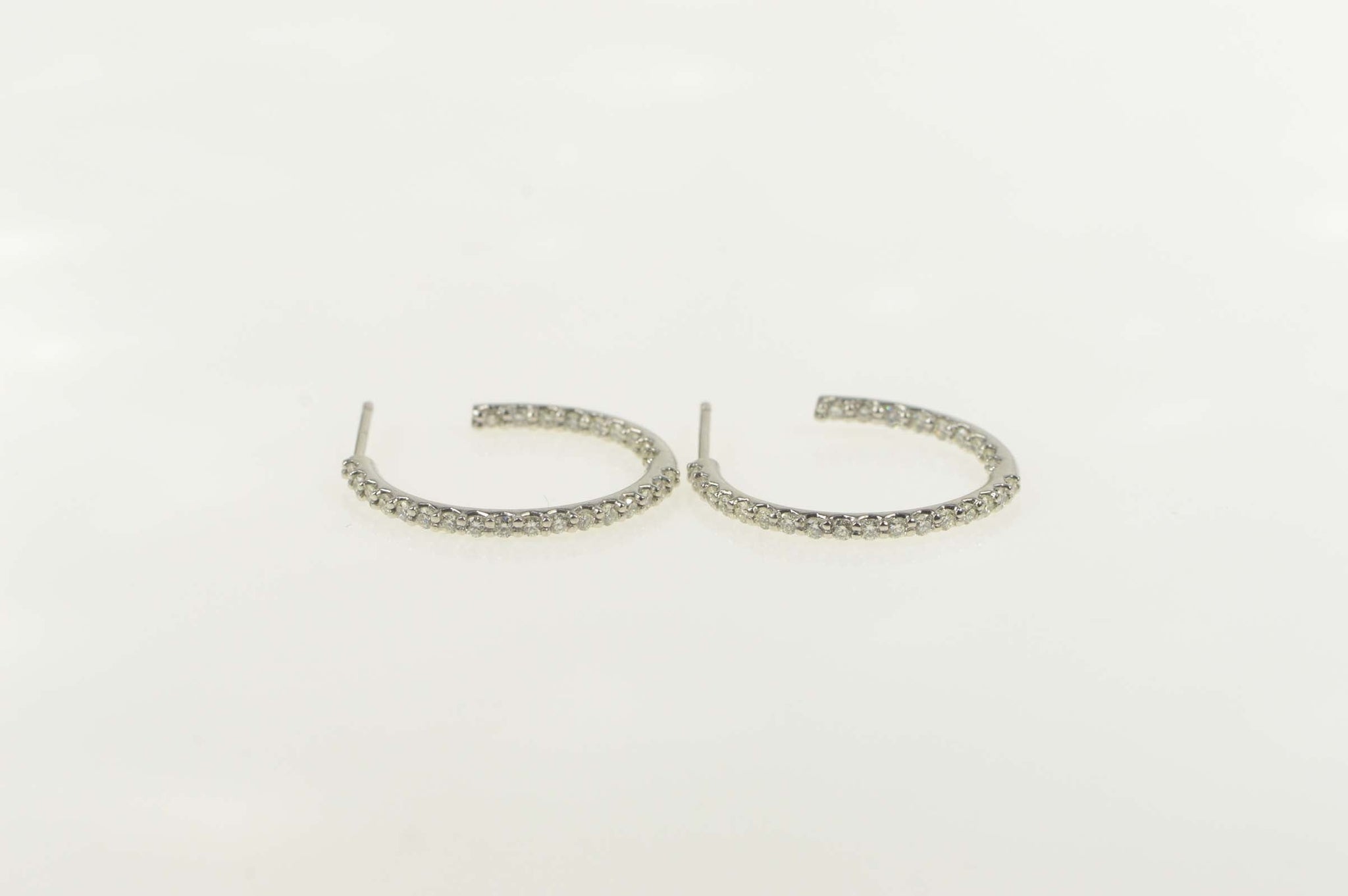 ·Item: 14K 0.50 Ctw Pave Diamond Outside Semi Hoop Earrings White Gold