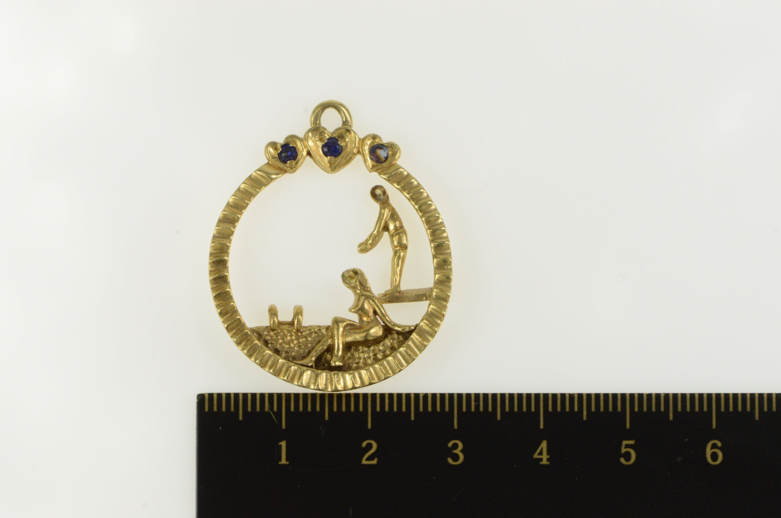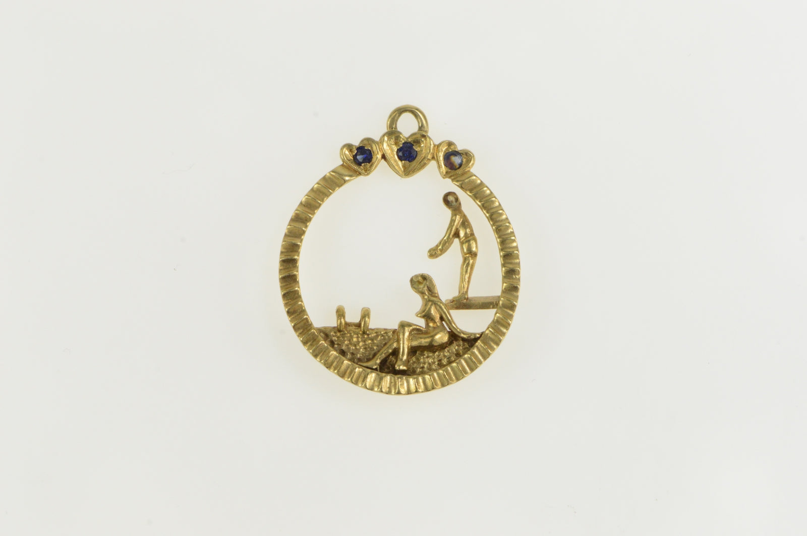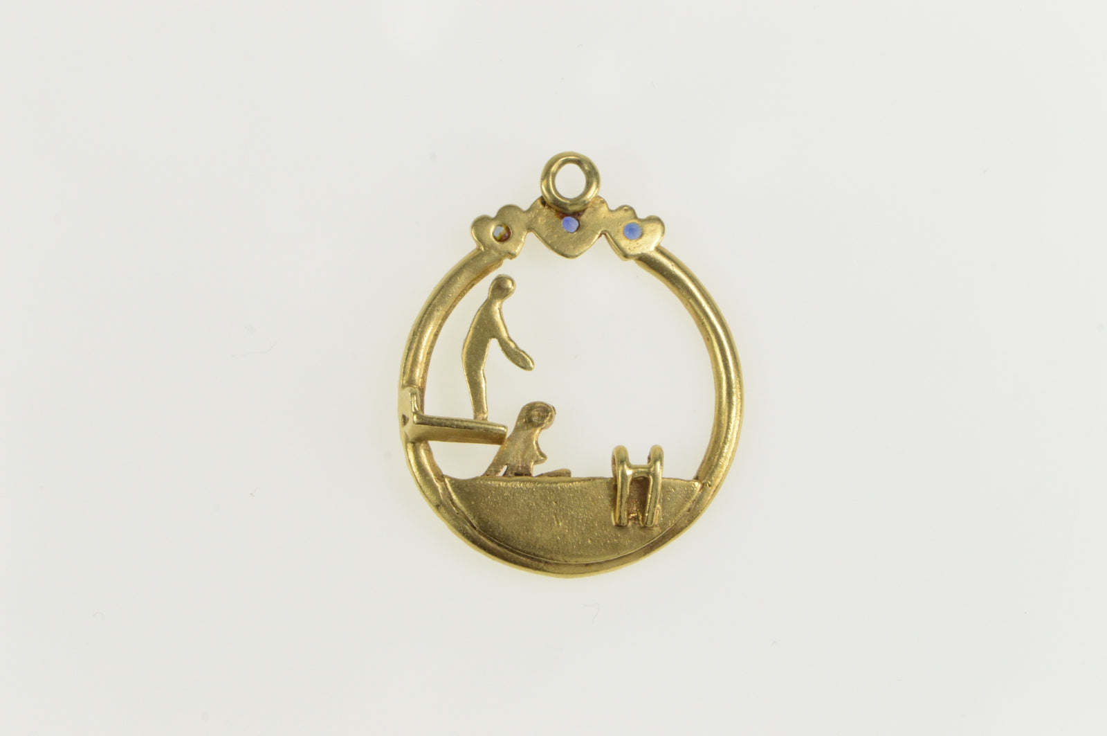 ·Item: 14K Sapphire Retro Swimming Pool Summertime Charm/Pendant Yellow Gold